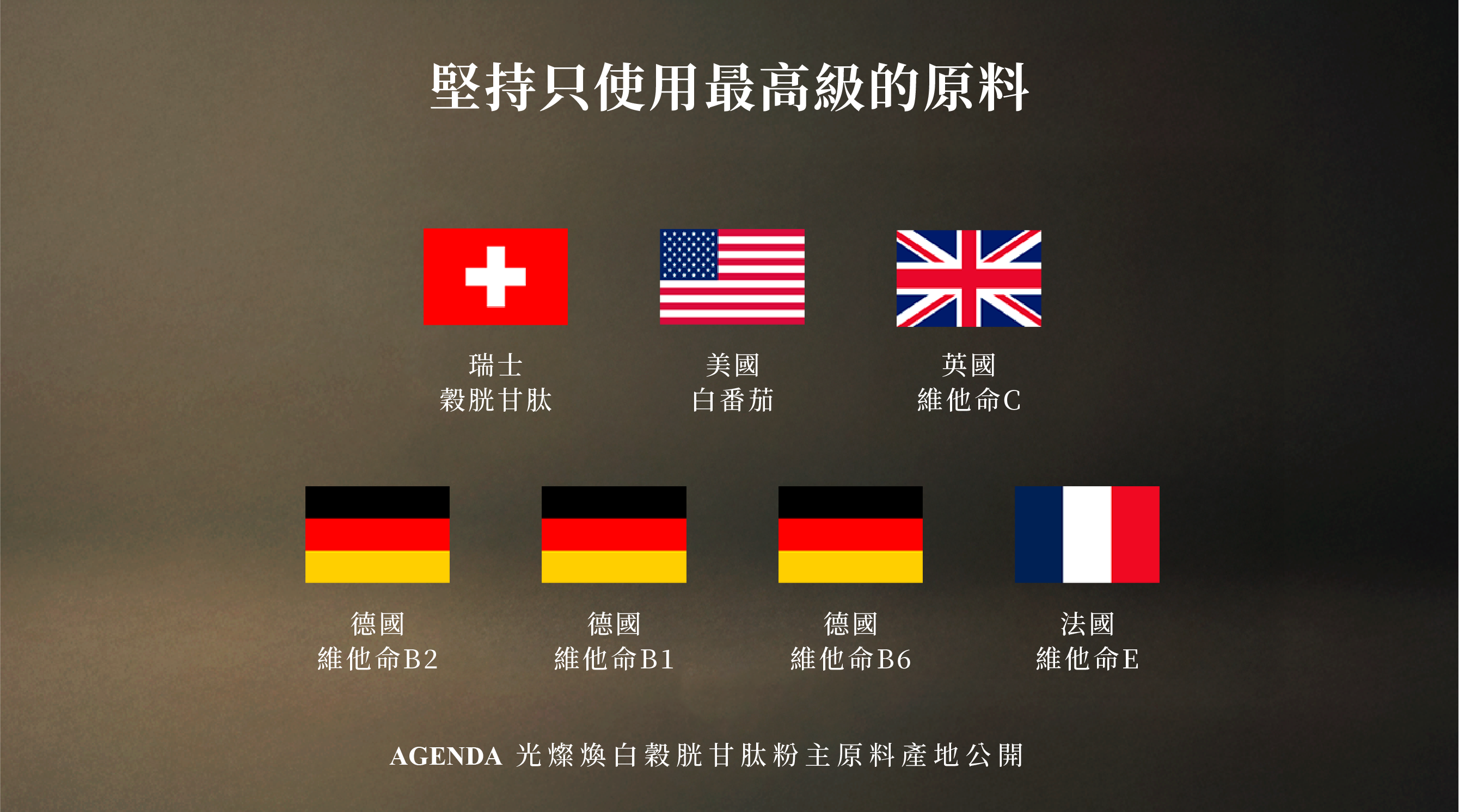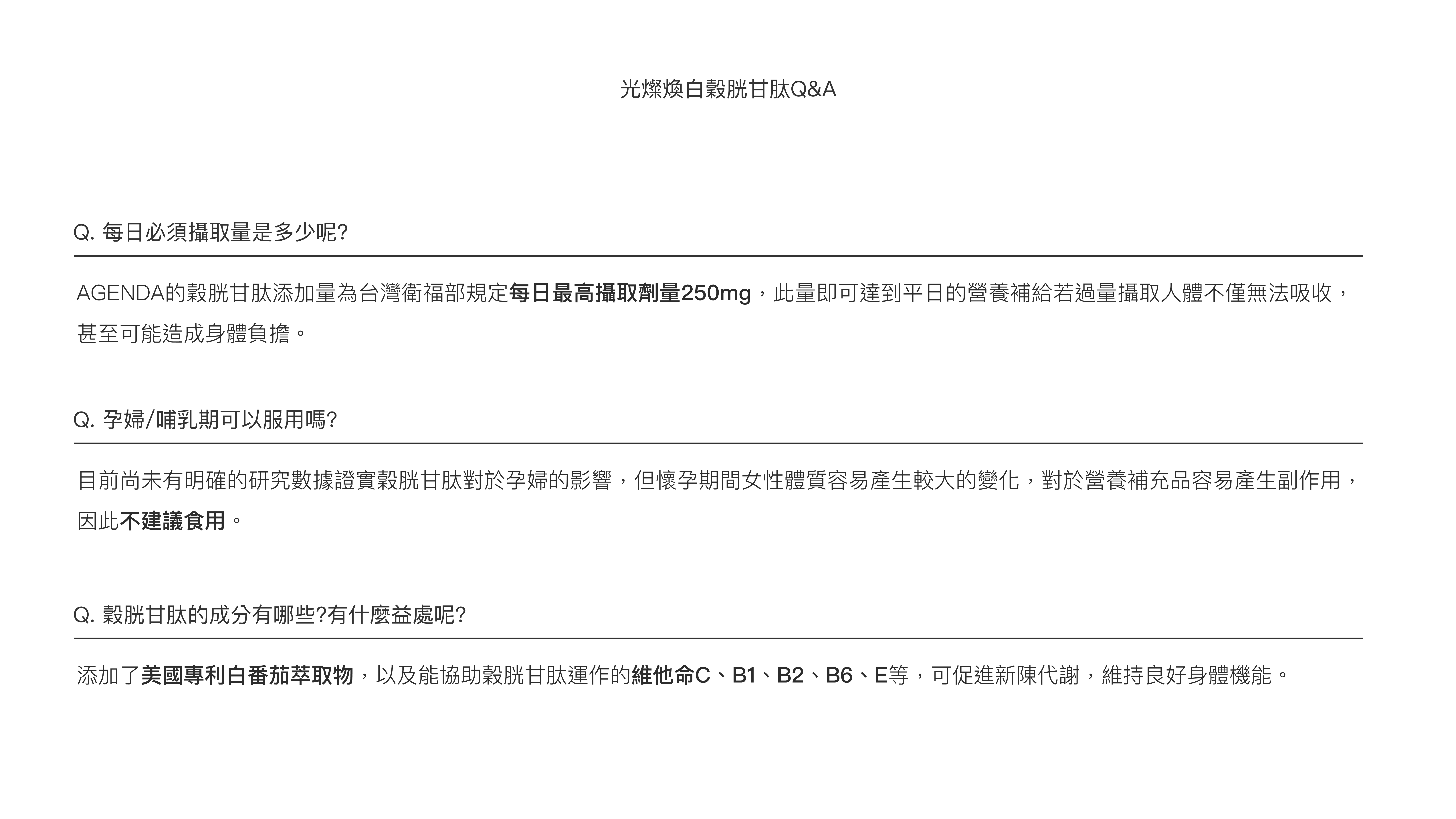 添加台灣法規最高穀胱甘肽含量,具強效抗氧化與美白功效,能夠抑制黑色素生成,改善暗沉與膚色不均,使肌膚明亮透白